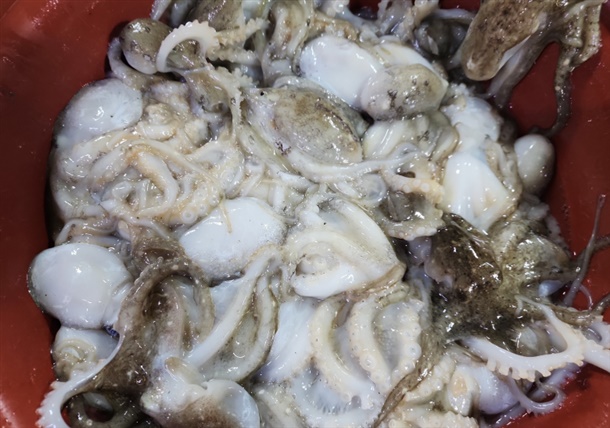 1. 주꾸미를 미끌미끌한 진액 없이 세척합니다