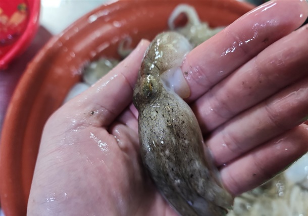 자연산이고 주꾸미 크기도 제각각이라~