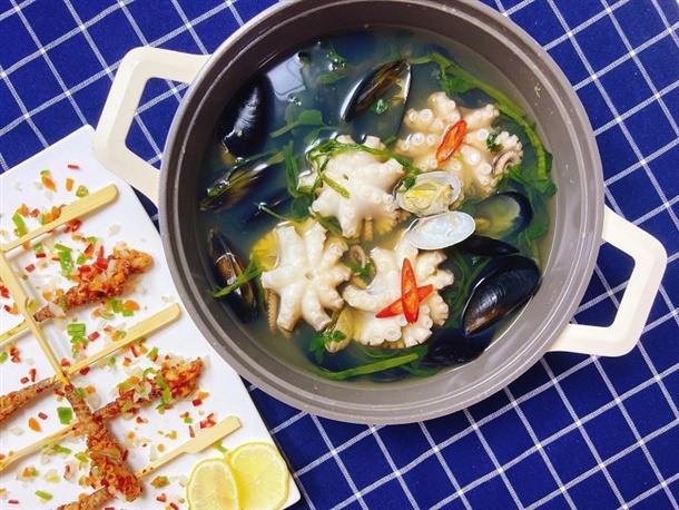 *주꾸미, *육수용 바지락 1kg, *청양고추 1개, *대파, *쑥갓,미나리,알배추 등