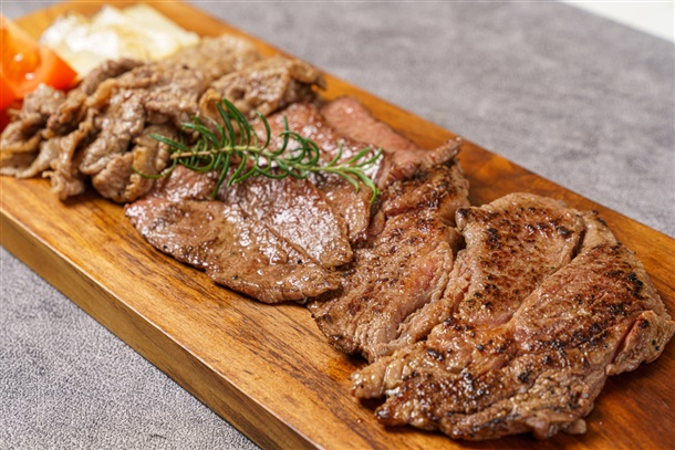 센 불에 겉면을 빠르게 구워 육즙을 가둔 후 중불로 취향에 맞게 익혀 드시면 맛있습니다.