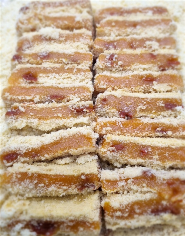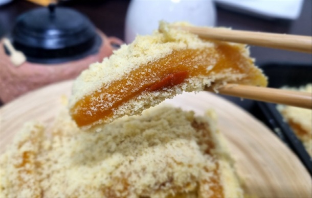 겉에는 부드러운 카스테라 가루가 넉넉하게 입혀져 달지 않으면서도