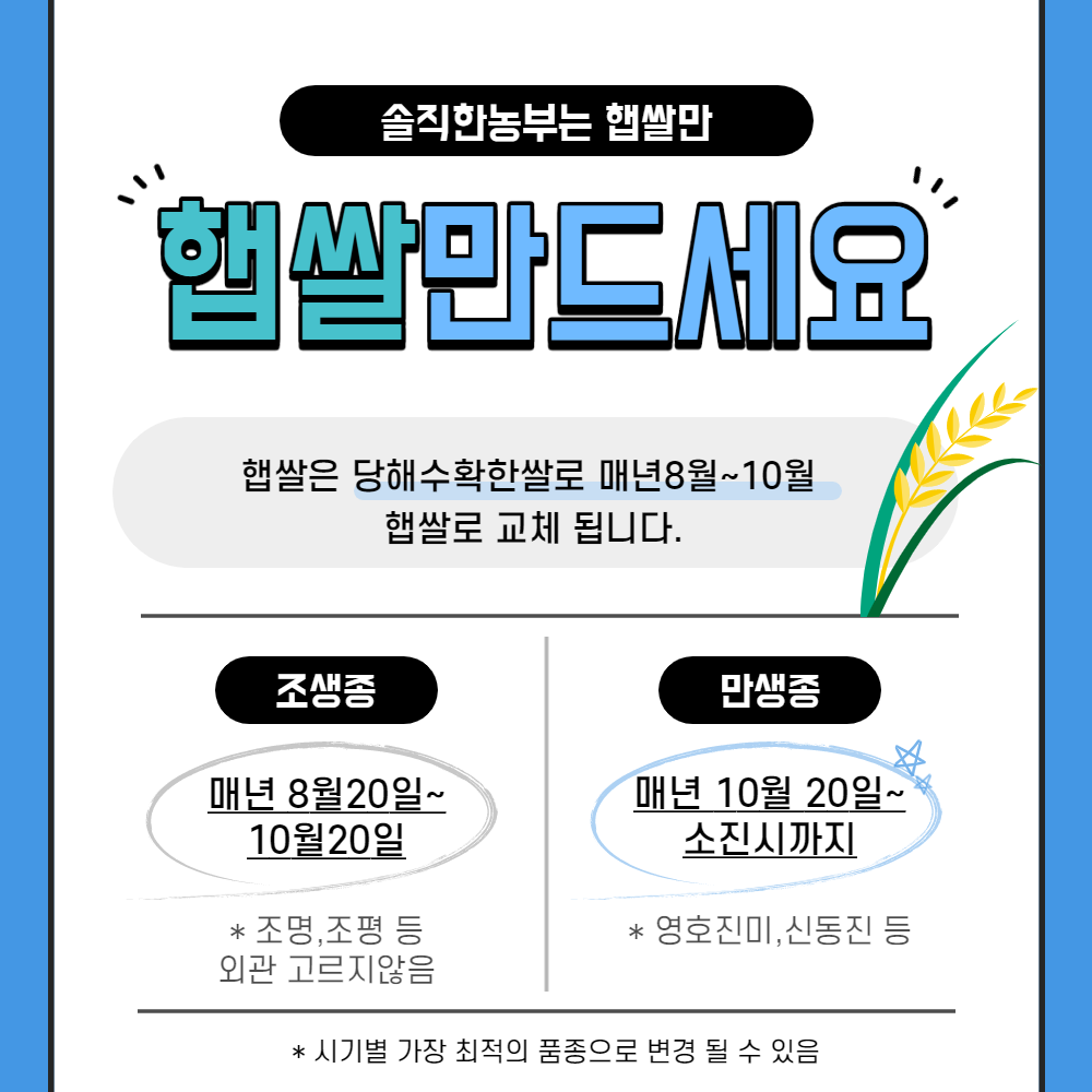 햅쌀인가요? : 매년 10월 말 부터로 햅쌀로 대체됩니다.
