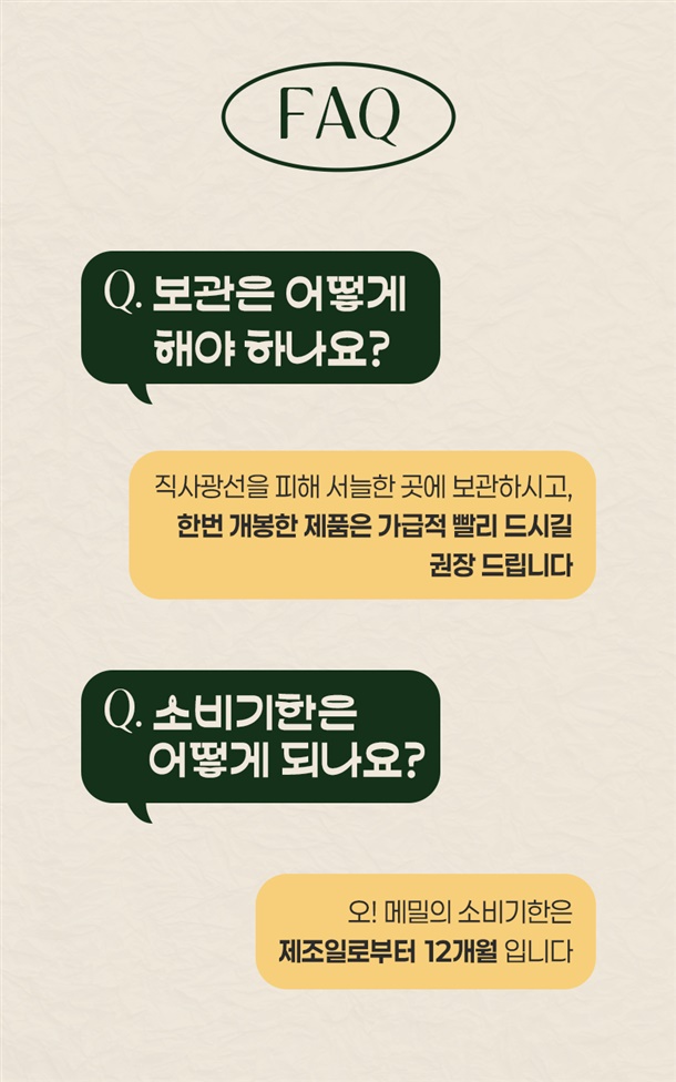 · 상품은 조기 배송될 수 있으며 배송일 지정은 불가합니다. 필요하신 경우 배송메세지 꼭 남겨주셔야 합니다 ( 배송메시지에 요청사항 기재없이 문의게시판 카톡채널등으로 문의 주시는경우, 순차답변으로 이미출고가 진행된경우에는 요청사항 처리가 어려울 수 있습니다 )