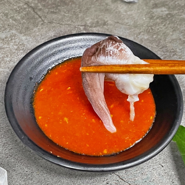 초장에 푹 찍어서 드시면 달큰한 맛이 예술입니다.