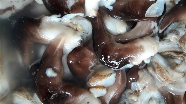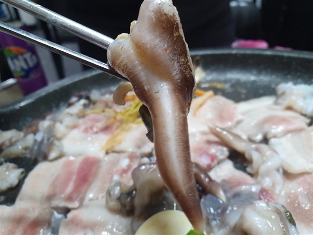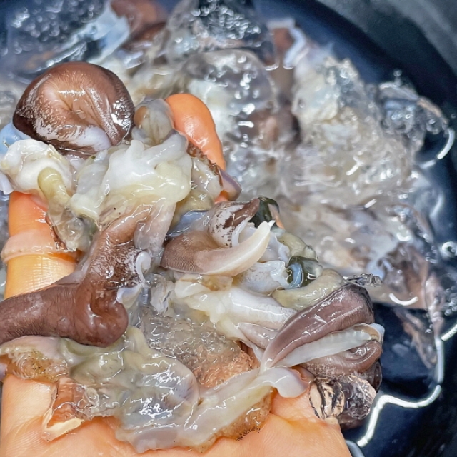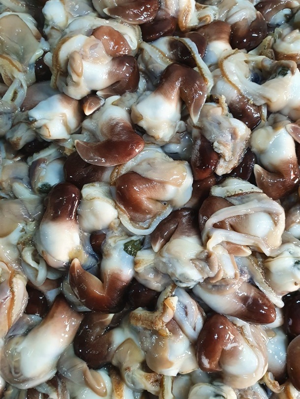 사람이 하나하나 손질하다 보니 내장이나 껍데기 일부가 남아 있을 수 있으니