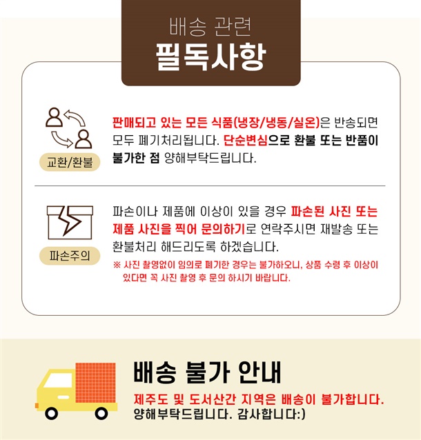 · 배송비 : 3,000원(8개 마다 기본배송비 반복 부과)