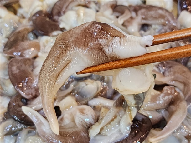 조개살 부분이 얇아 쫄깃쫄깃한 식감이 특징입니다.