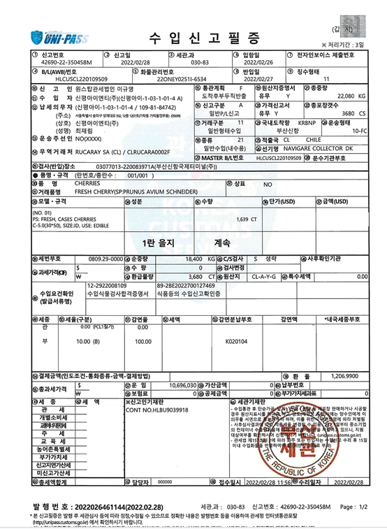 칠레산 프리미엄 체리